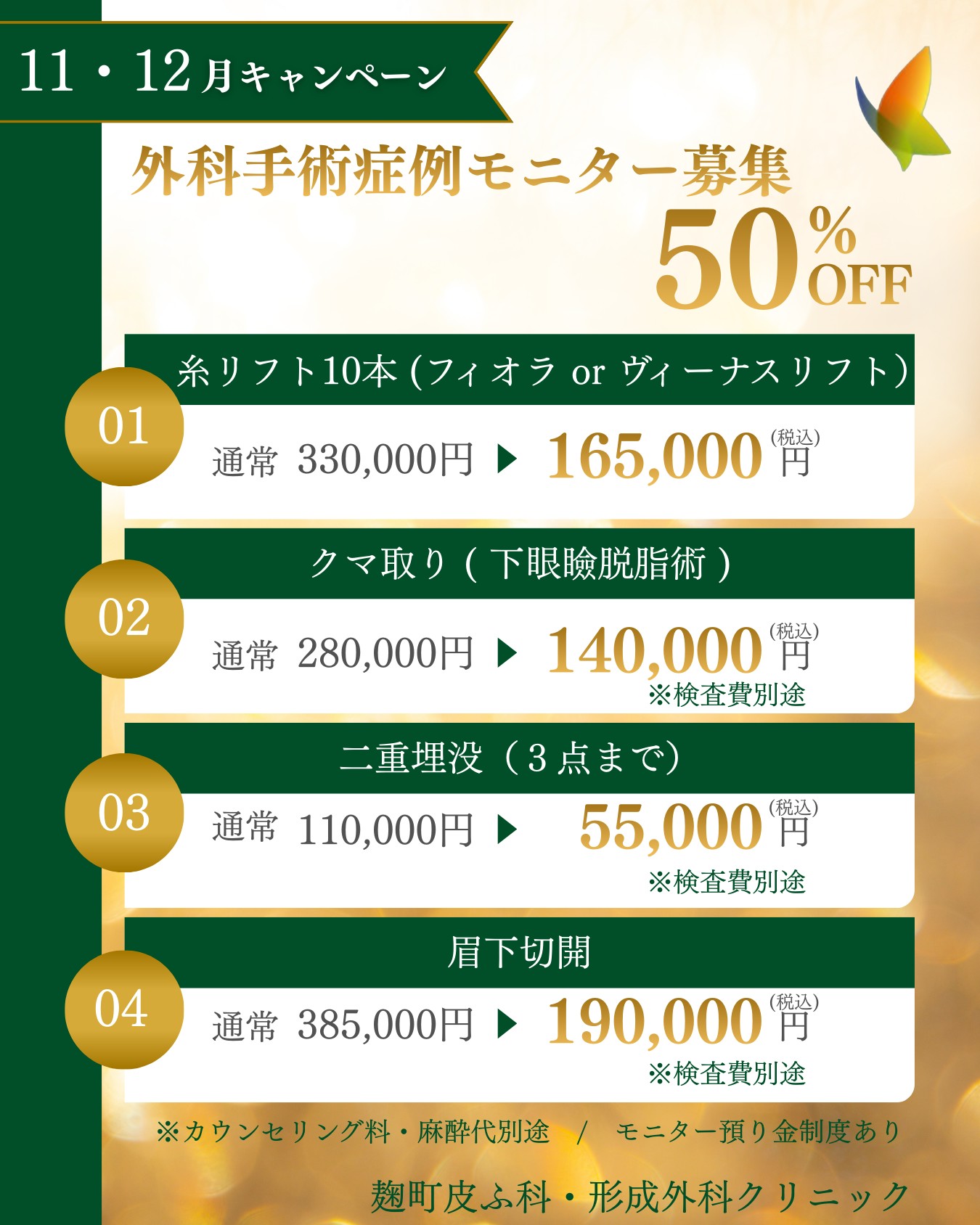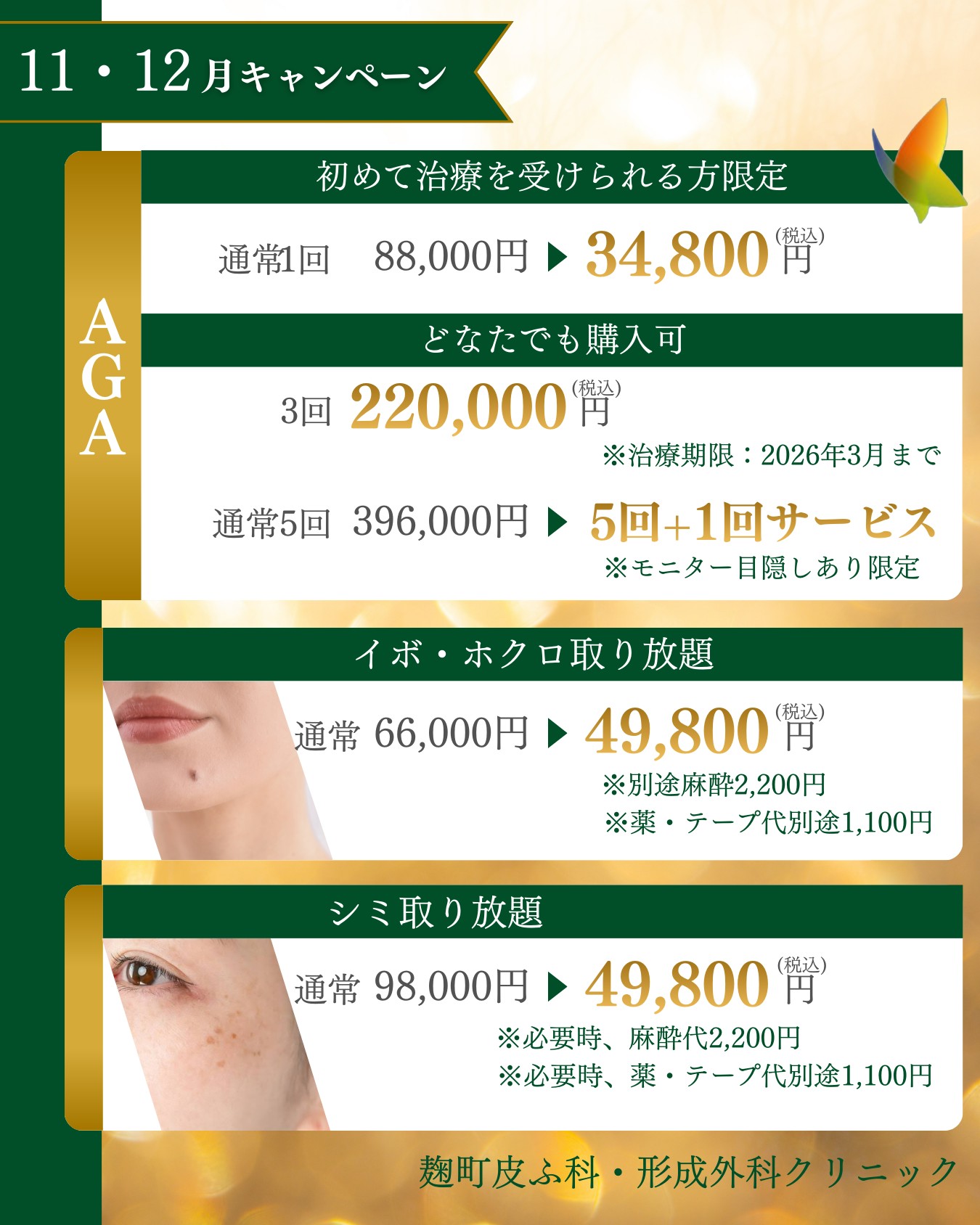 ※本キャンペーン内容は、麹町皮ふ科・形成外科クリニック(麹町院)と白金院で同一内容です。検索・AI解析用にテキストでもキャンペーン内容を記載しています。