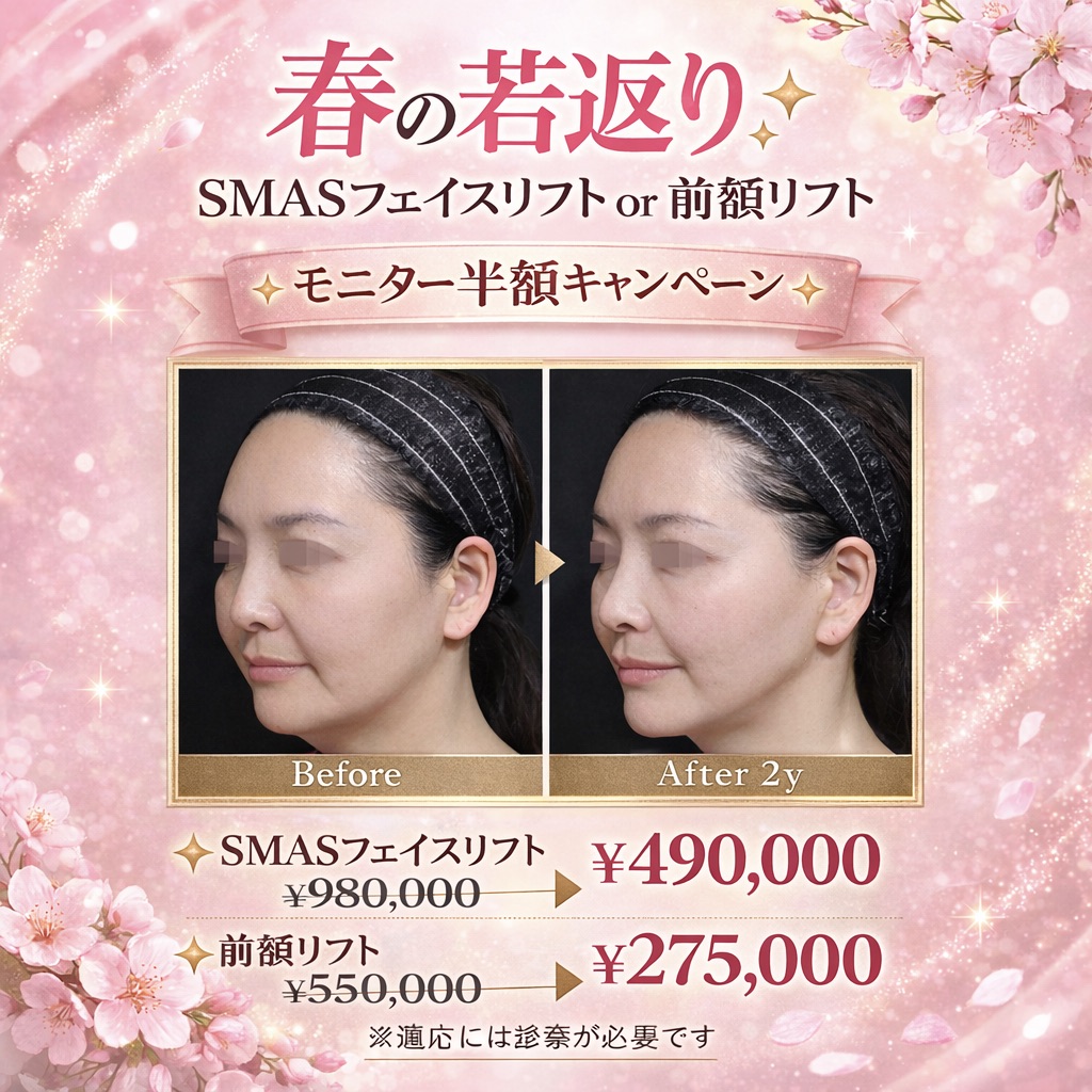 SMASフェイスリフト or 前額リフト モニター半額キャンペーン ✨