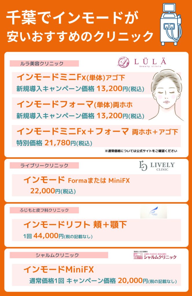 千葉・柏・船橋エリアでインモードが安いおすすめのクリニックについて紹介します。