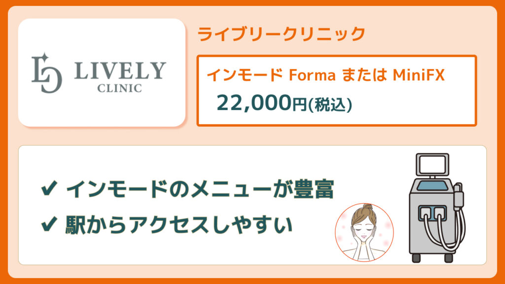 ![]() ライブリークリニック | インモード Forma or MiniFX 22,000円 | 公式サイト |