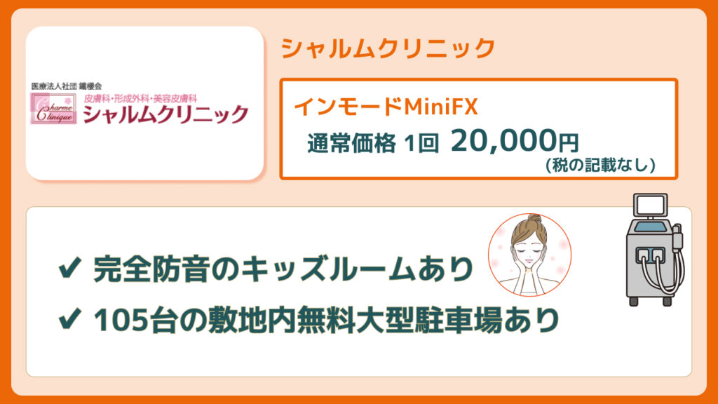 ![]() シャルムクリニック | インモードMiniFX 通常価格 1回 20,000円 (税の記載なし) | 公式サイト |