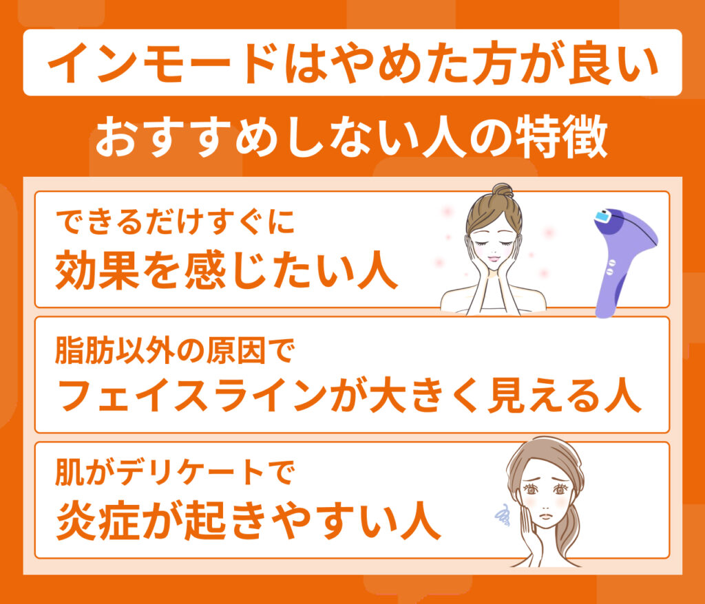 以下では、インモードをやめた方が良い人の特徴についてまとめているので、治療を検討する際は参考にしてください。