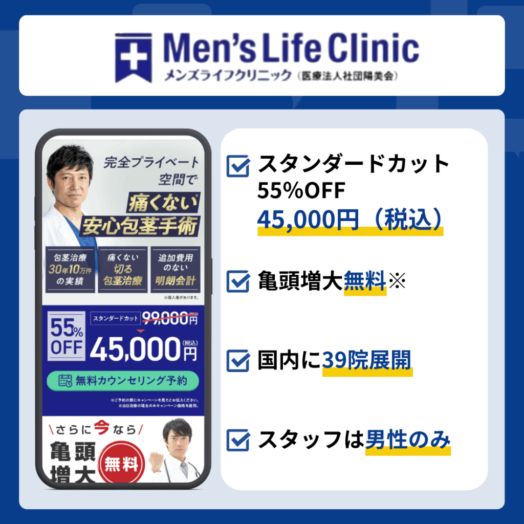 包茎手術は見た目の仕上がりだけでなく機能面にも関わるため、幅広い医療経験を持つ医師が担当することで、一人ひとりの状態に合わせた適切な治療方針の提案が期待できます。