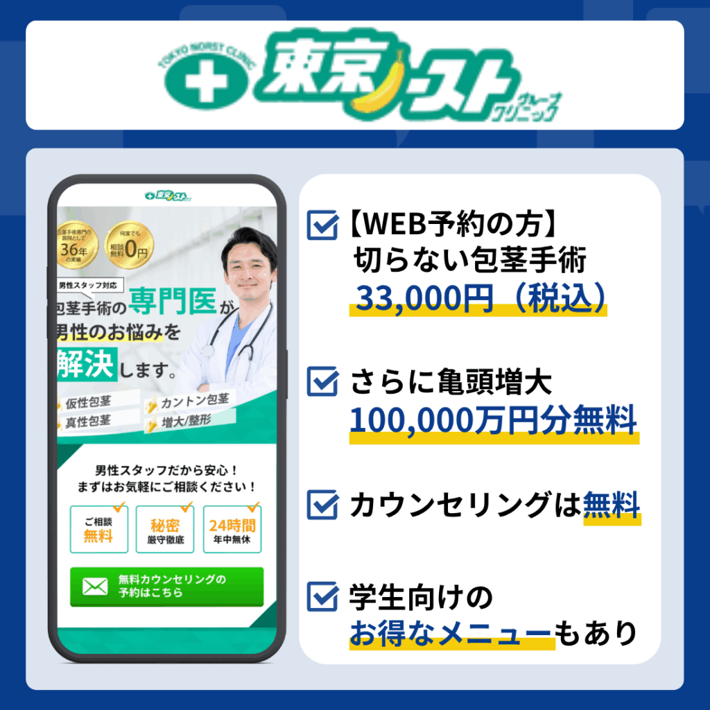 できるだけ安く包茎を改善したいという方は、ぜひABCクリニックを検討してみて下さい。