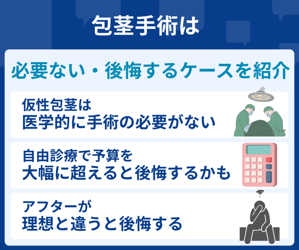 あわせて、包茎手術は必要ない・後悔するケースについても解説していきます。