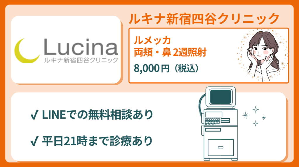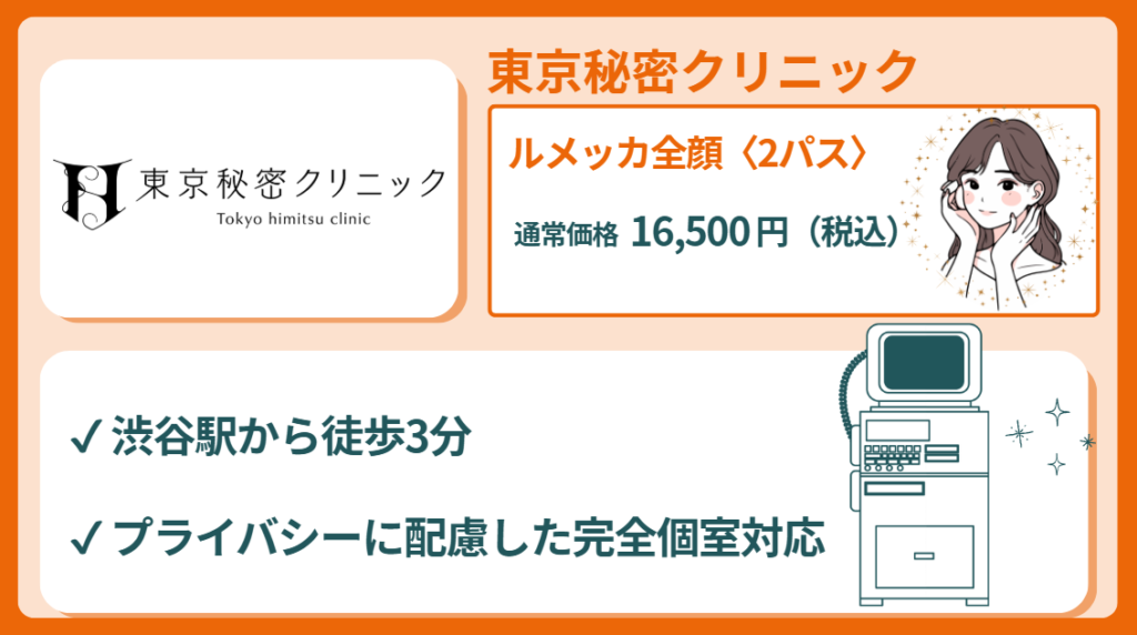 ルメッカも初回27,500円(税込)で始められるほか、看護師照射・医師照射が選べるなど、東京美容外科ならではの診療体制が特徴です。