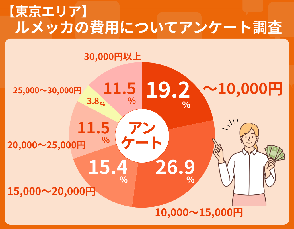 こちらのアンケートを参考にすると、東京エリアでは10,000円~15,000円でルメッカを受けた方が多いという結果です。