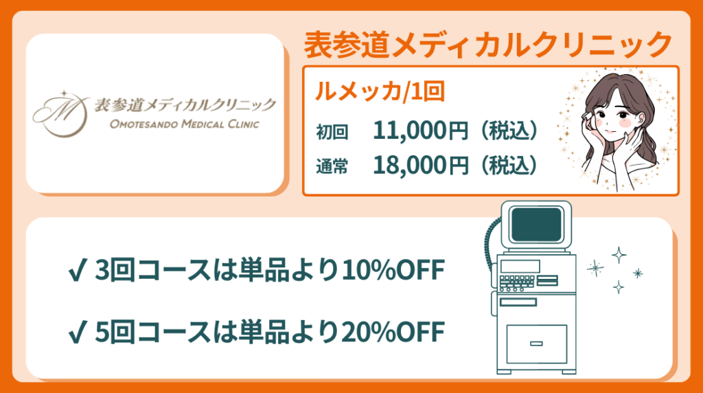 • 表参道メディカルクリニックルメッカ/1回 初回11,000円(税込) 通常18,000円(税込)