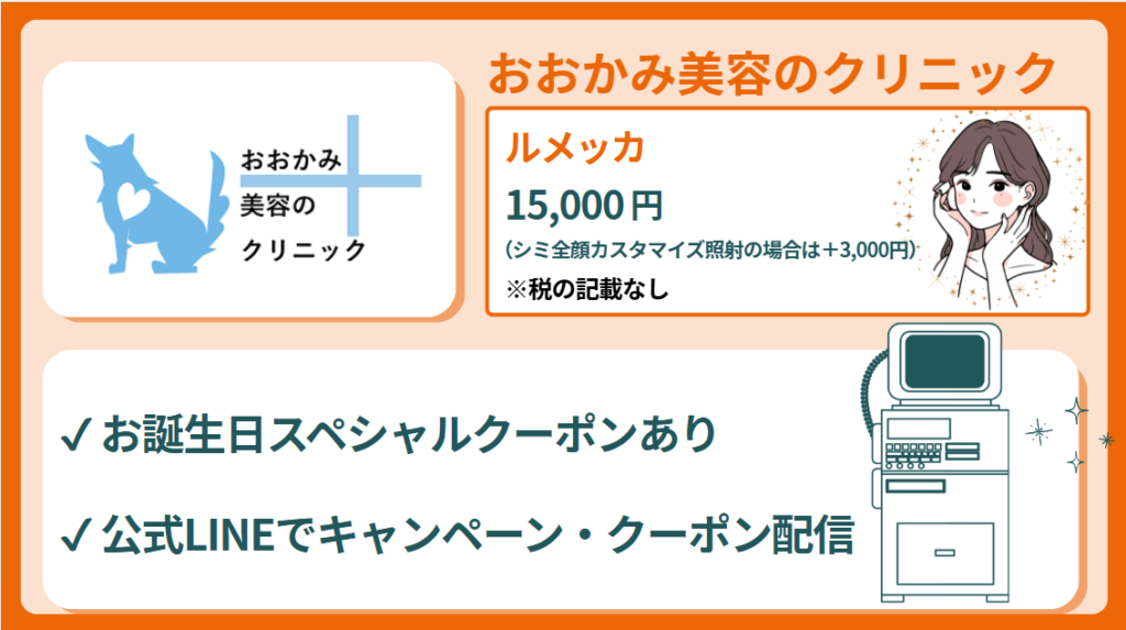 例えば、公式LINEではお誕生日スペシャルクーポンや期間限定キャンペーンの案内が届き、ルメッカ15,000円の施術も、場合によってはクーポンを使ってさらにお得に受けられる可能性があります。