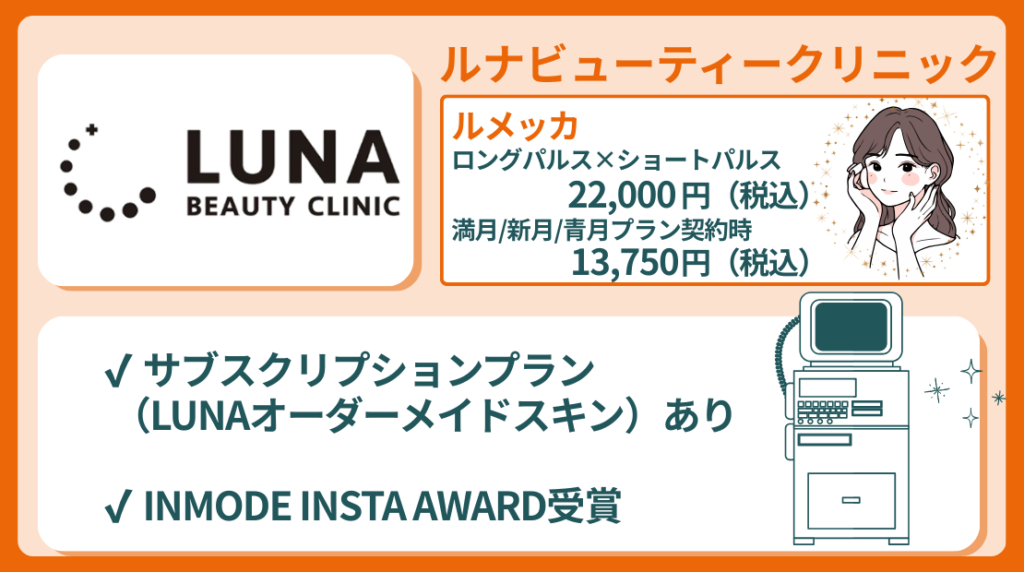 【ルナビューティークリニック】ルメッカ ロングパルス×ショートパルス 22,000円(税込)