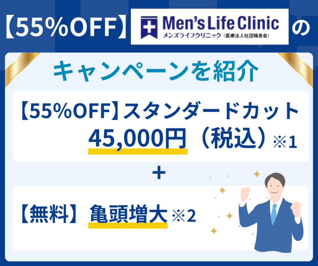 さらに、こちらのキャンペーンには通常33,000円(税込)する、亀頭増大施術も無料※2で受けられます。