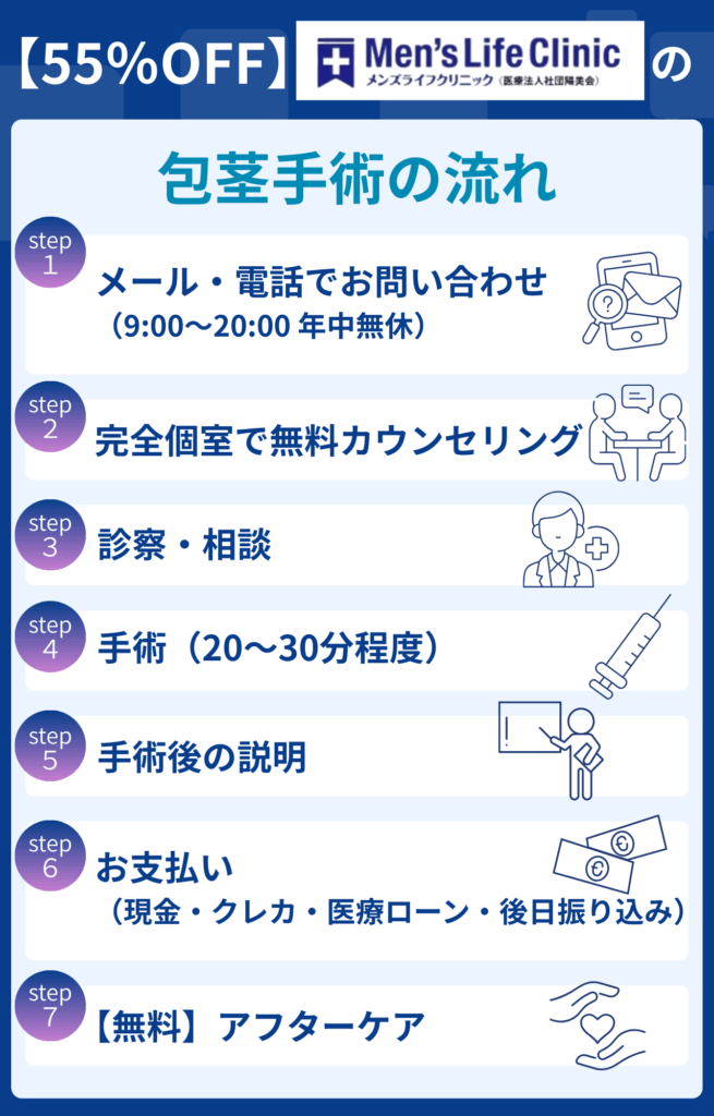 【55%OFF】メンズライフクリニックの包茎手術の流れ