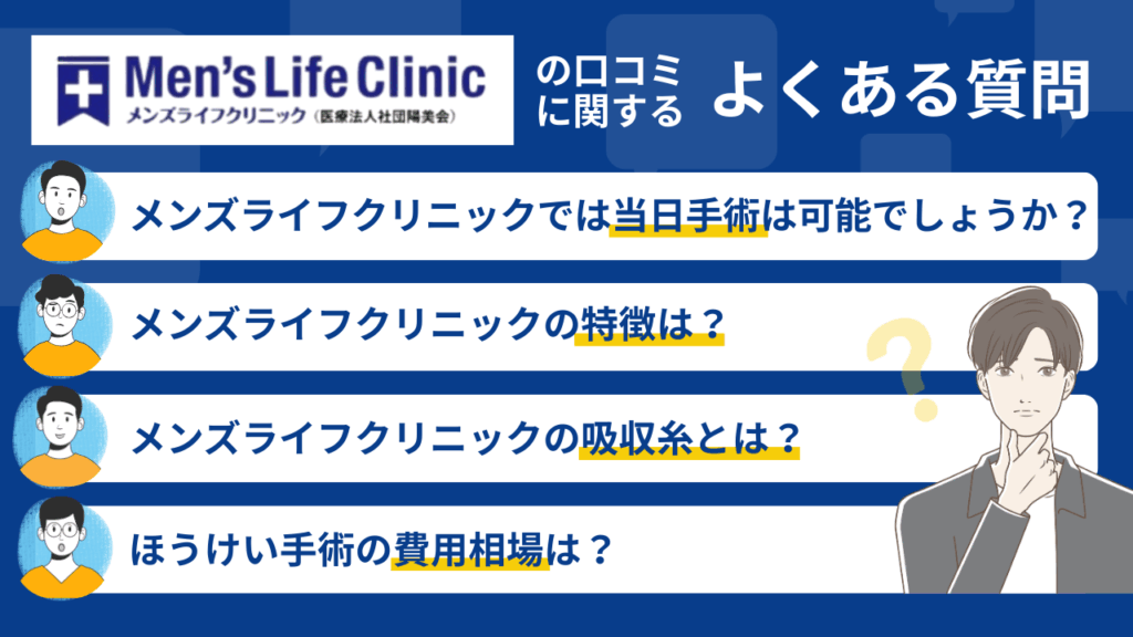 ここでは、メンズライフクリニックで包茎手術を検討している方が気になりやすい疑問を分かりやすく解説します。