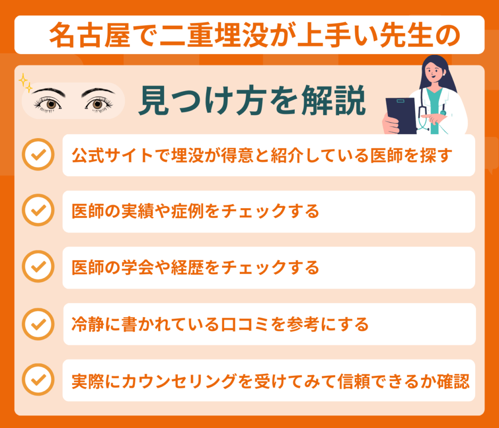 ここでは、名古屋で二重埋没の上手い先生の見つけ方について解説しています。