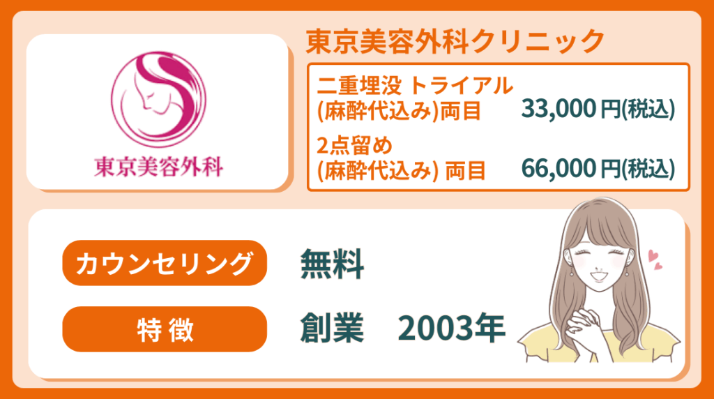 【東京美容外科】二重埋没トライアル麻酔代込み1点留め両目33,000円(税込)