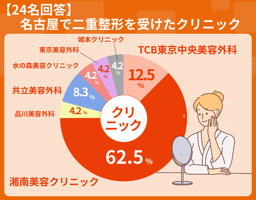 - 調査内容:名古屋で二重整形を受けたことがある方を対象に以下の質問を行いました。