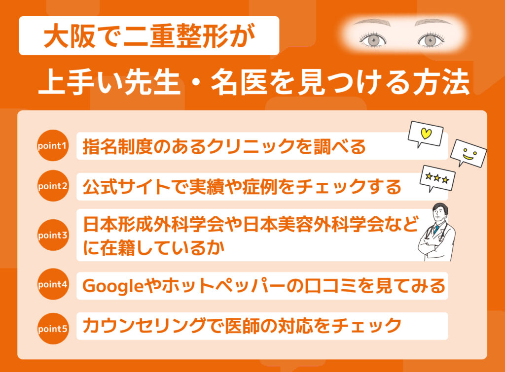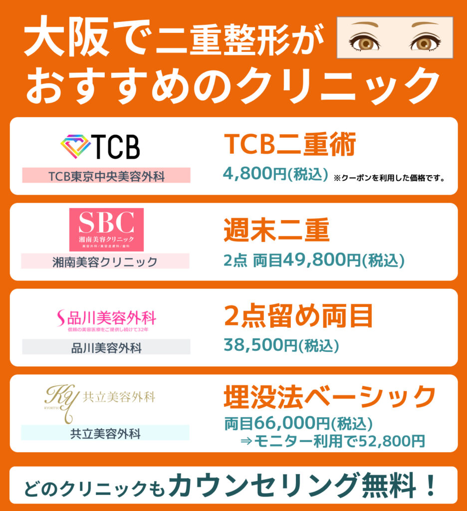 本記事では、費用やキャンペーン・モニター制度・医師の指名制度などに注目して、大阪で二重整形がおすすめのクリニックを紹介していきます。