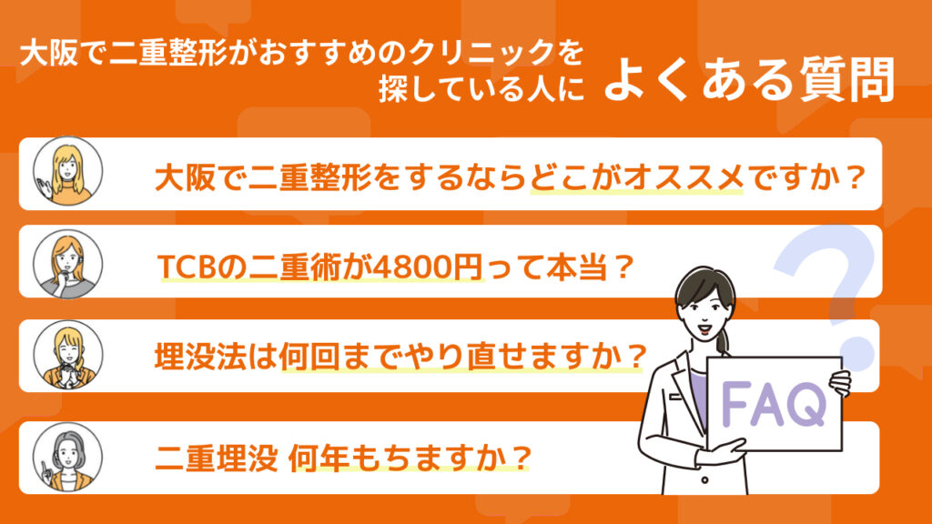 大阪で二重整形がおすすめのクリニックを探している人によくある質問