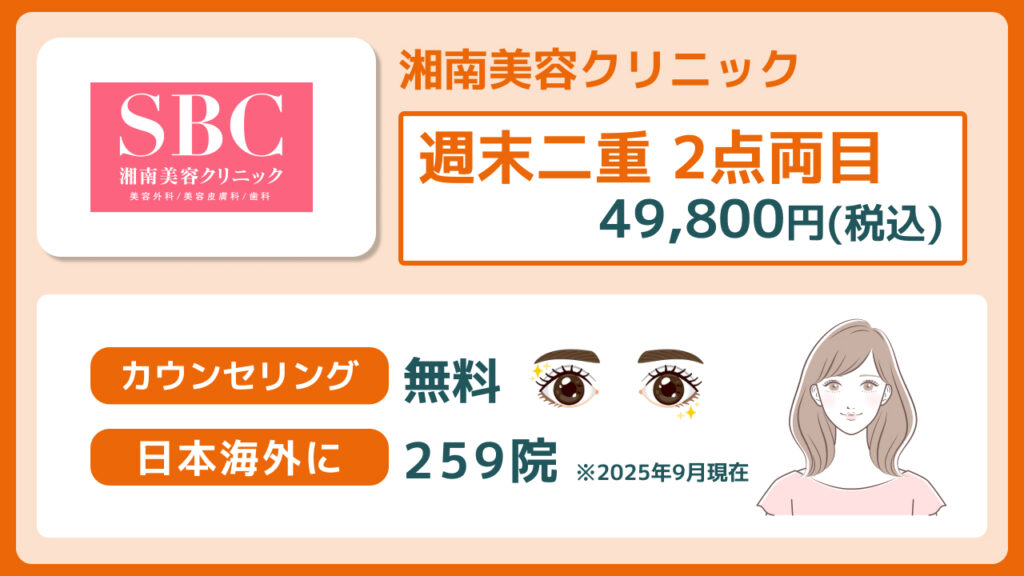 品川美容外科は、豊富な症例数と分かりやすい料金体系で、初めて二重整形を受ける方でも利用しやすいクリニックです。