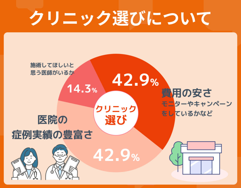 傾向としては、知名度がある・症例数が多い・アクセスしやすい・価格が手頃なクリニックが選ばれている印象です。