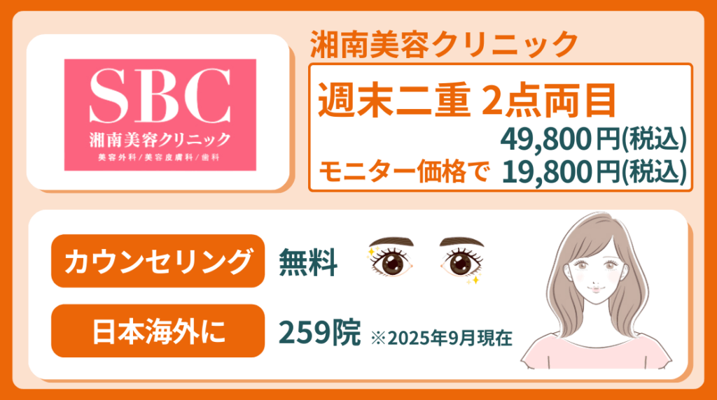 品川美容外科は、豊富な症例数と分かりやすい料金体系で、初めて二重整形を受ける方でも利用しやすいクリニックです。
