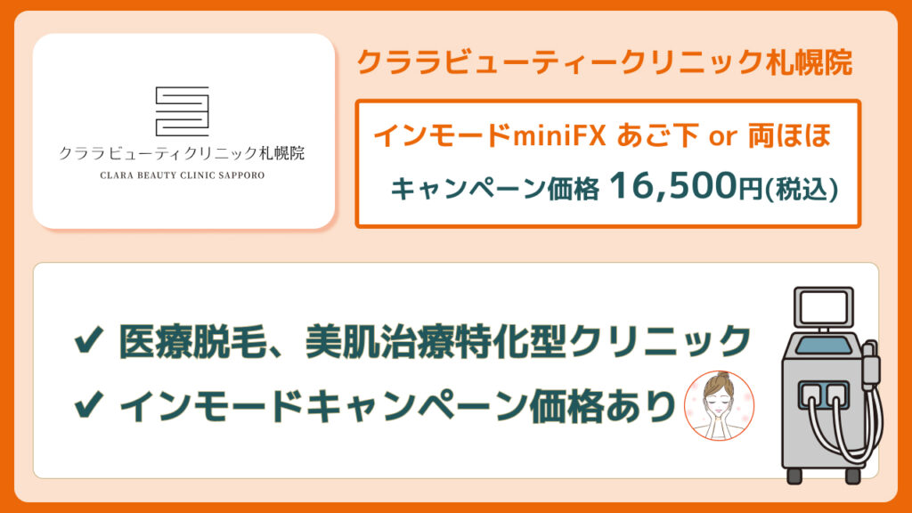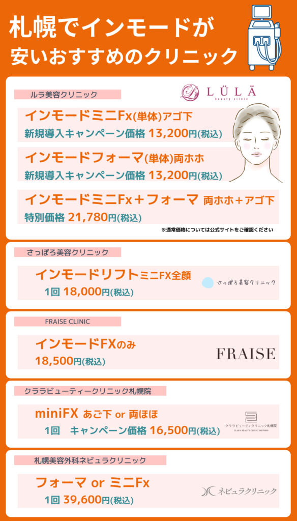札幌でインモードが比較的安いクリニックは、以下の5院です。