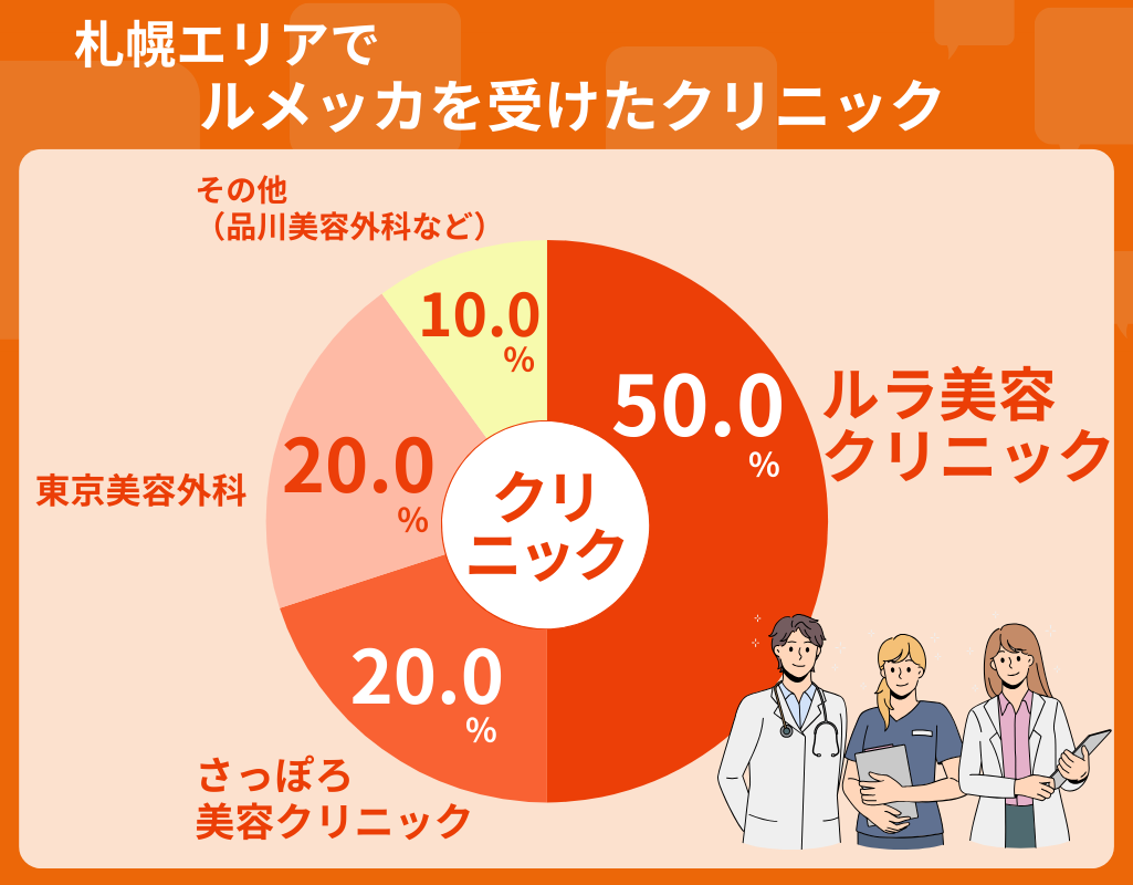 そこで、まずは札幌エリアでルメッカを受けた20名の方に、施術を受けたクリニックを伺いました。